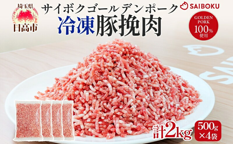 【ふるさと納税】サイボク 冷凍 ゴールデンポーク 挽肉 2kg 500g 4袋 豚ひき肉 銘柄豚 パラパラ 赤身 ジューシー チャック付き ストック食材 餃子 そぼろ 冷凍保存 お取り寄せ 埼玉県 日高市