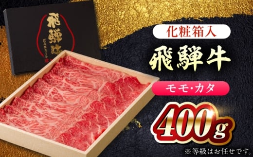 【5月発送】飛騨牛モモ・カタ(赤身) すきやき・しゃぶしゃぶ用 400g 等級お任せ 化粧箱入り 国産 和牛 岐阜市 / だるまミート [ANBE018-5]