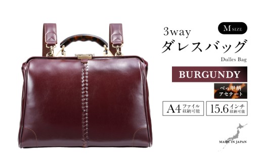 - 【選べるカラー】【選べるハンドル】Y7 横型 ダレスバッグ Mサイズ べっ甲柄アセテートハンドル <バーガンディ> [N-18103e] / 鞄 カバン 手持ち鞄 リュック 肩掛け鞄 越前漆塗 伝統工芸 プレゼント ギフト 日本製 福井県鯖江市