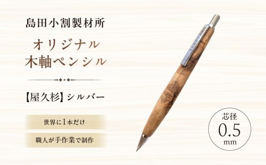 - 島田小割製材所オリジナル木軸ペンシル【屋久杉】(シルバー)【 天然木 シャーペン ペン 手作り オリジナル 屋久杉 文房具 ギフト 贈答 プレゼント 】