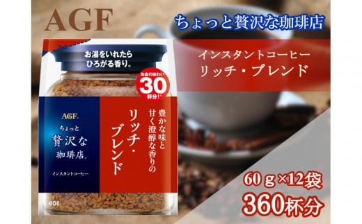 AGFの「ちょっと贅沢な珈琲店」 リッチ・ブレンド袋 60g×12袋(インスタントコーヒー)