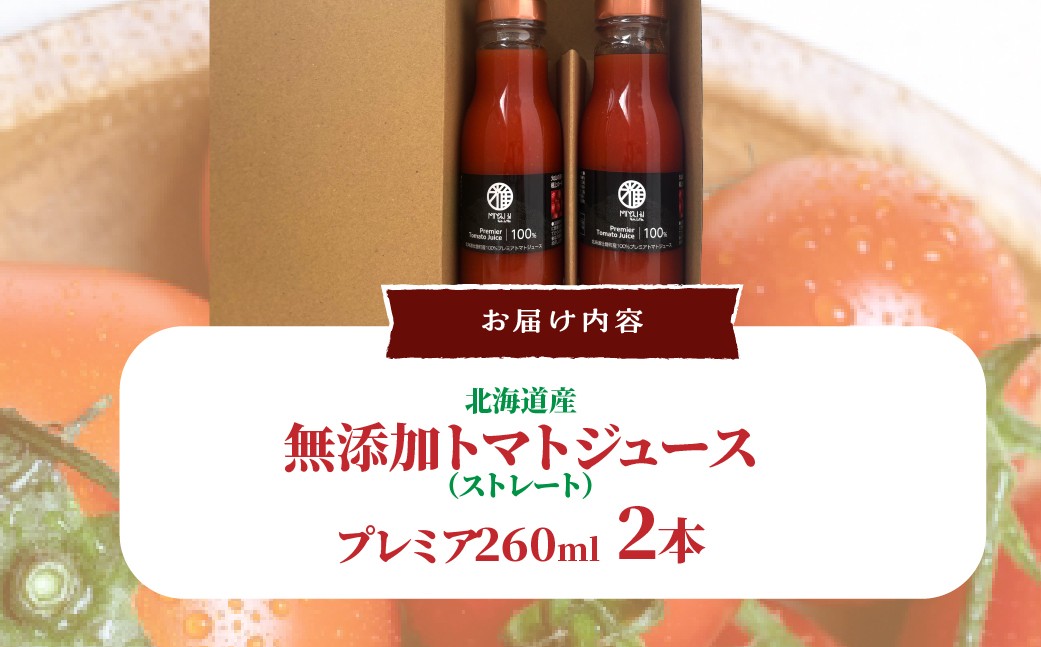 - 無添加トマトジュース(ストレート)260ml×2本【プレミア2本】 【 ふるさと納税 人気 おすすめ ランキング トマト トマトジュース ストレート 無塩 無添加 効果 血圧 スープ 北海道 壮瞥町 送料無料 】 SBTAK005