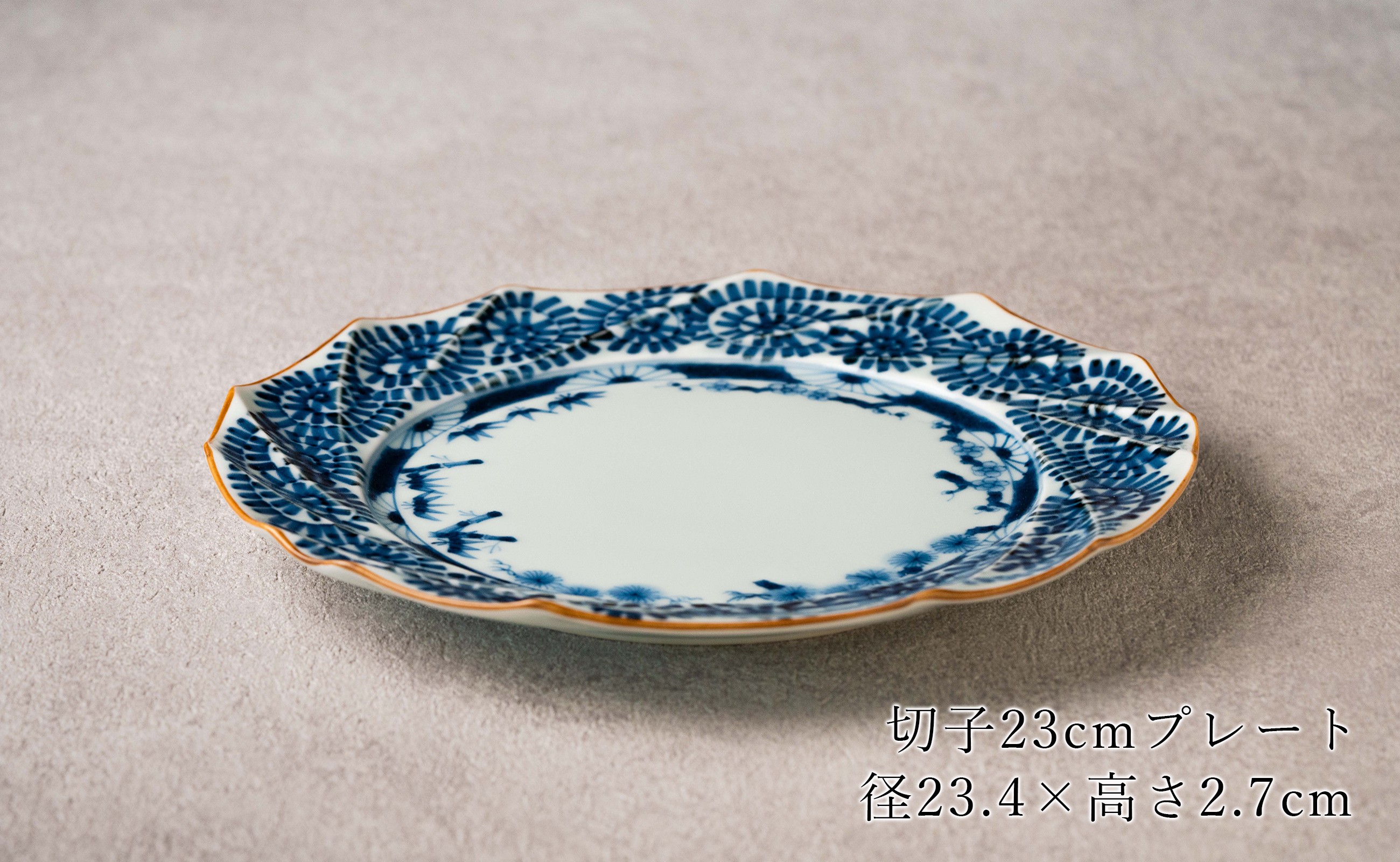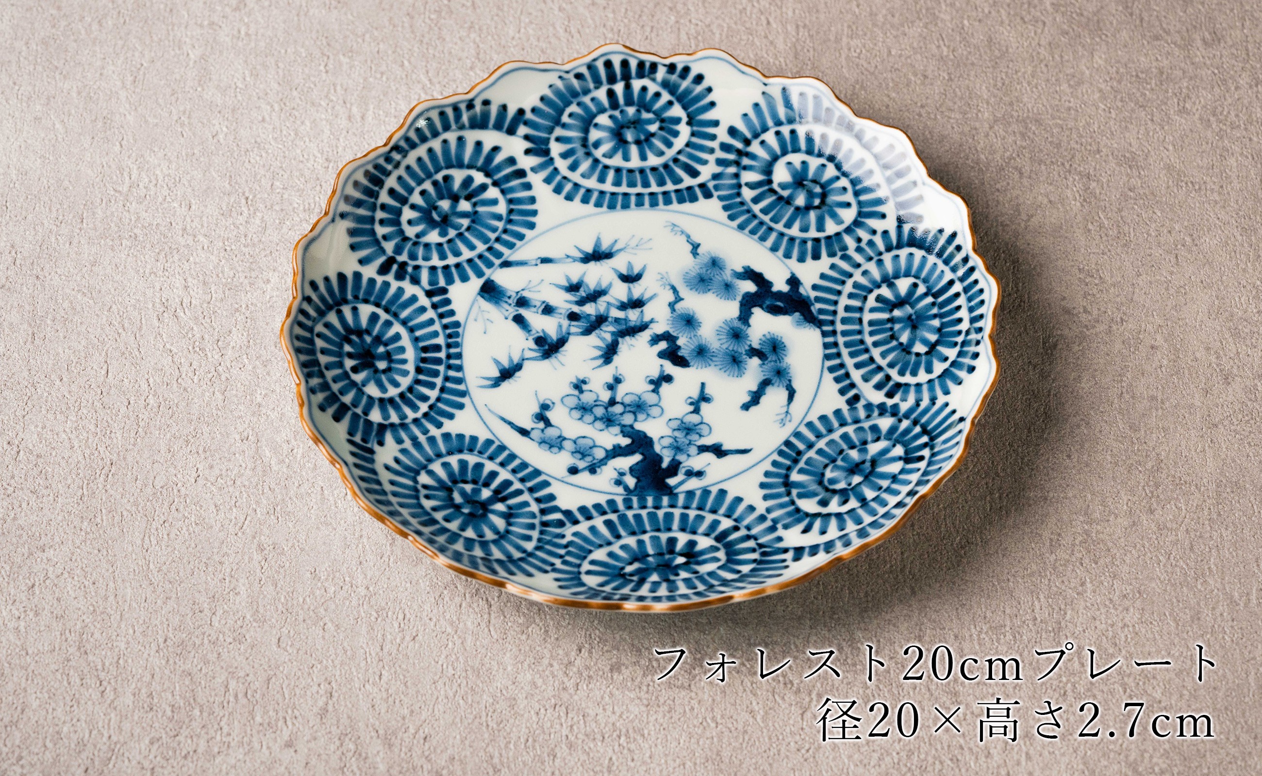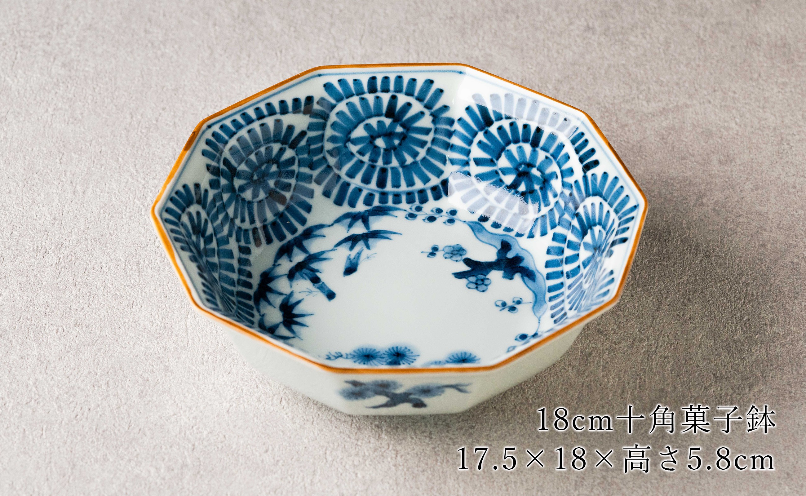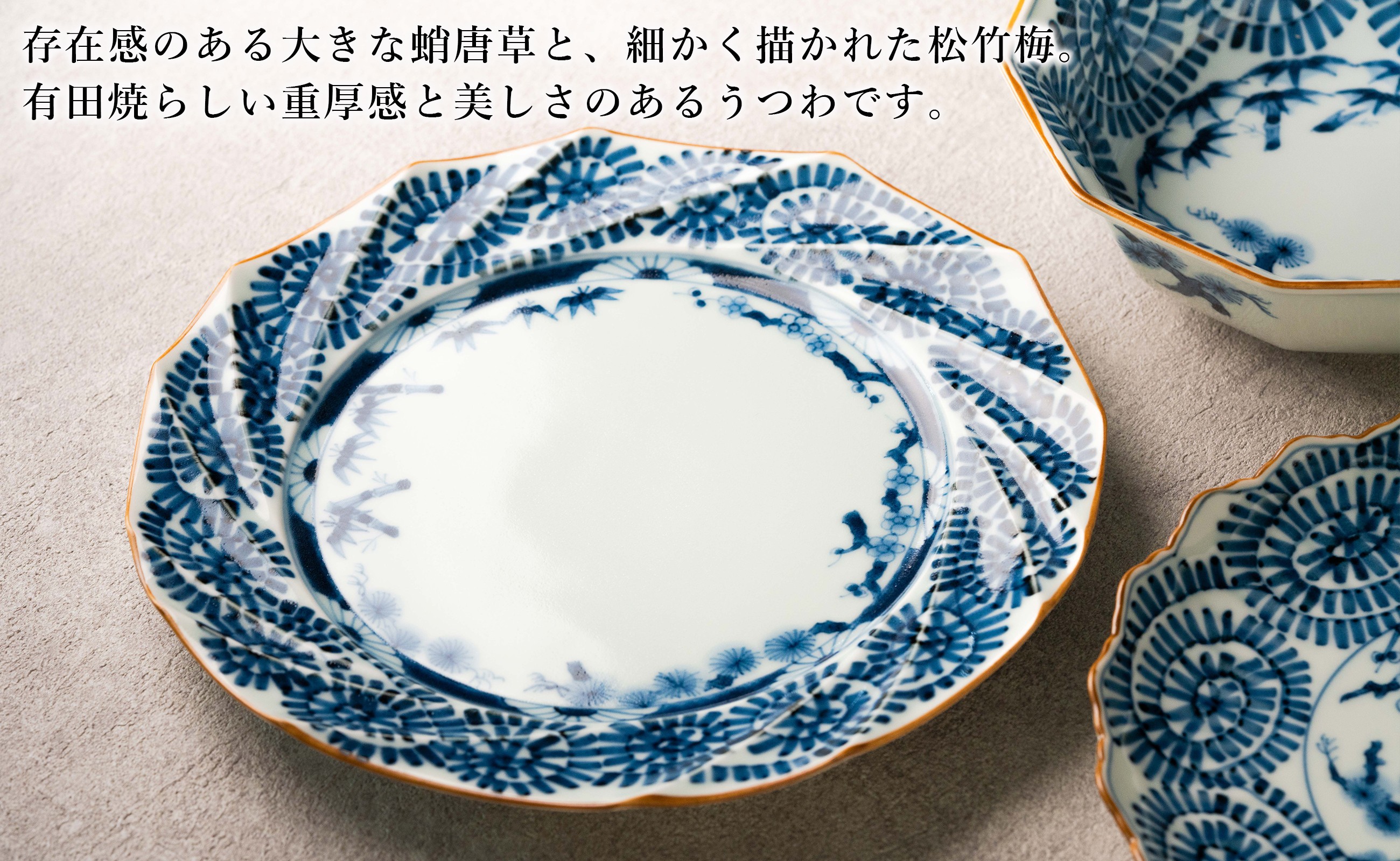 - 【セット】【カネアオ】 有田焼 染付 松竹梅蛸唐草 3点セット (20cm プレート1枚、23cm プレート1枚、十角菓子鉢1枚) 宝泉窯