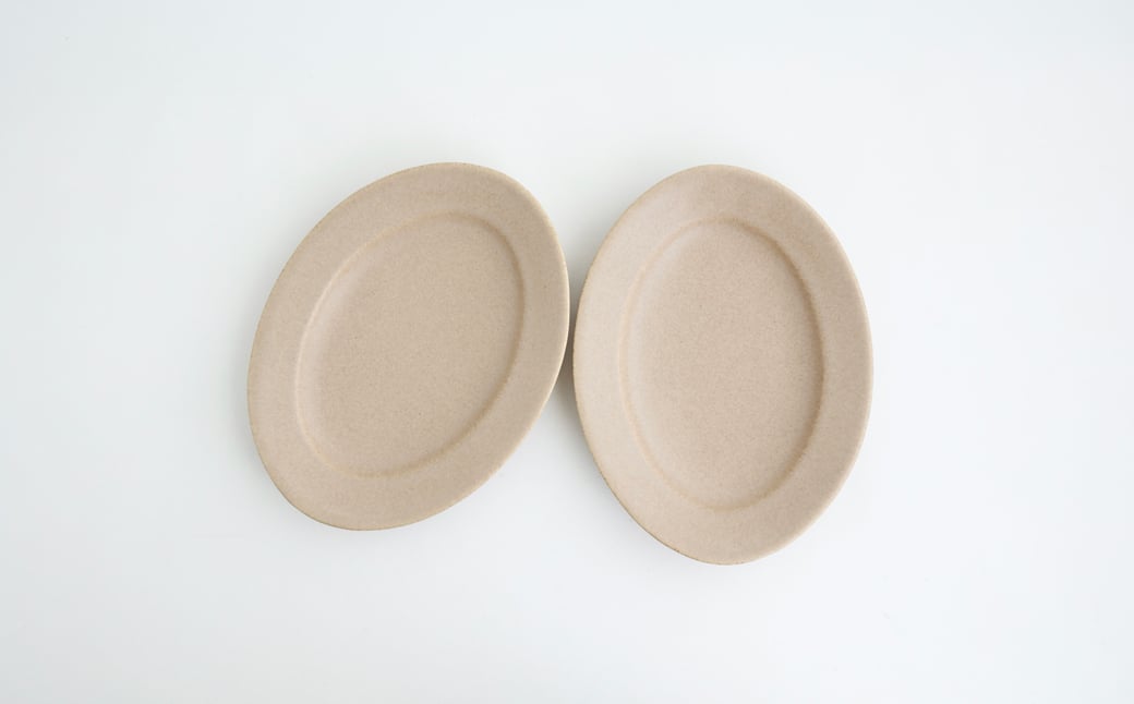 - 【Awabi ware】 オーバル皿M ペアセット (ベージュ×2) 《決済から3ヶ月前後で発送》