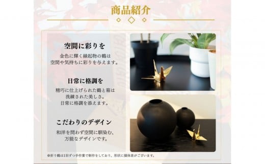 幸せを呼ぶ金の折り鶴 1羽セット【木箱なし】