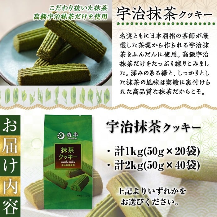 - 《森半》<容量が選べる>宇治抹茶クッキー(計1kg~2kg) 【uj-AR006・uj-AR007】【森半】