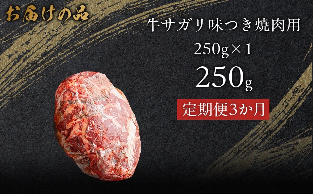 - 【3か月定期便】牛サガリ味つき焼肉用 250g (250g×1) 【ふるさと納税 人気 おすすめ ランキング 肉 牛肉 牛サガリ 牛 にく ニク 味付き 焼肉 バーベキュー BBQ 北海道 室蘭市 送料無料】 MROBM021