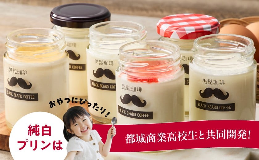 - 「黒髭珈琲」純白プリン2種6個セット_11-9902_(都城市) 黒髭珈琲 純白プリン プリン スイーツ デザート 白いプリン ミルクプリン なめらかプリン 瓶入りプリン イチゴソース チョコクランチ ほうじ茶シロップ 2種セット 6個セット 学生プロデュース 共同開発 オリジナルスイーツ お取り寄せスイーツ ギフト プレゼント 贈り物 ご褒美スイーツ