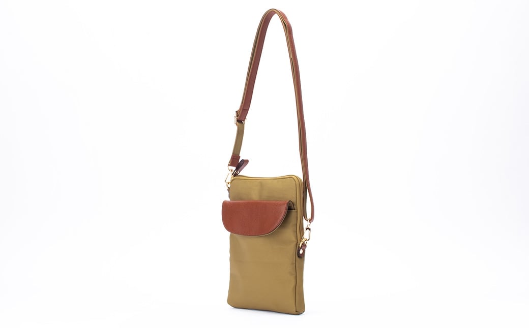 - 豊岡工房 牛革使い スマホが触れるショルダー(4185)ブラック・ブルー・ベージュ / ショルダーバッグ スマホをいれたまま操作可能 ナイロン素材 薄マチ 軽量 ポシェット 斜めがけ メンズ レディース かばん カバン バッグ 鞄 国産 日本製 小田清株式会社