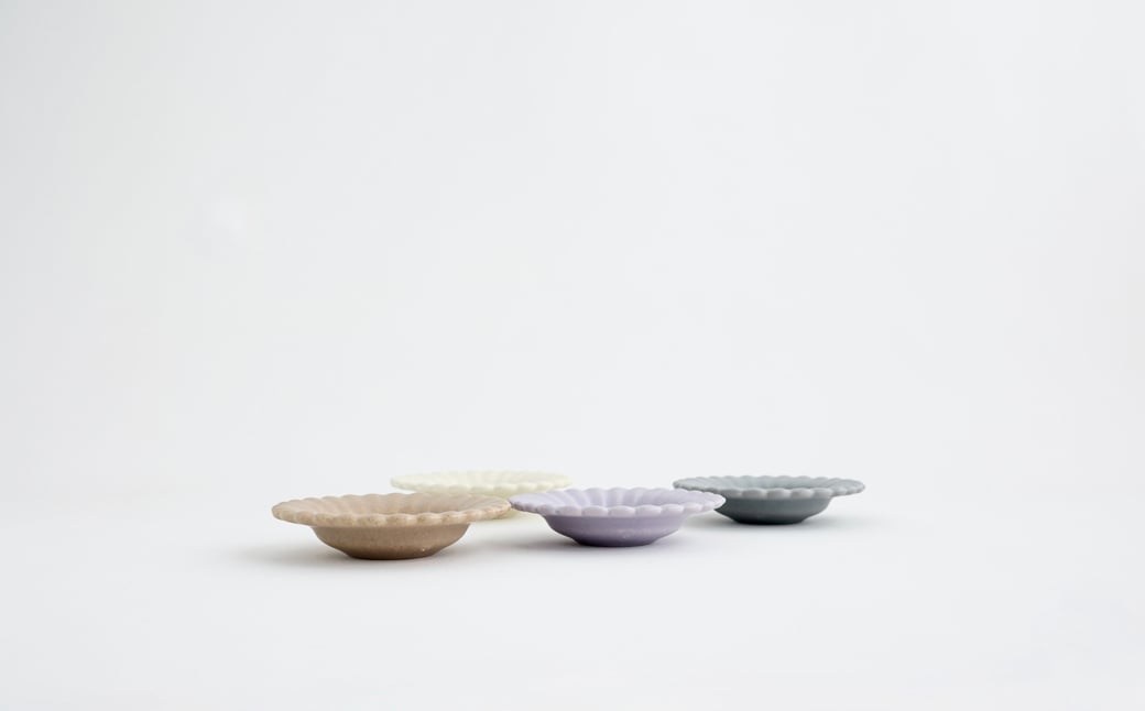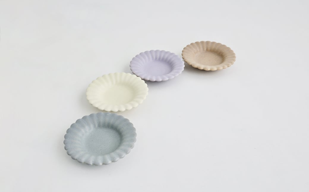 - 【Awabi ware】ひまわり豆皿 4枚セット(アイボリー・青マット・ベージュ・パープル) 《決済から3ヶ月前後で発送》