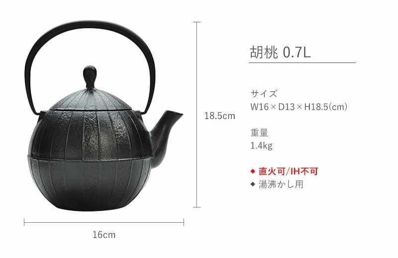 - 南部鉄器 鉄瓶 胡桃 0.7L 鉄分補給 直火対応 南部鉄瓶 急須 南部鉄瓶急須 鉄 鉄分 調理器具 キッチン キッチン用品 日用品 貧血予防 岩手 岩手県 盛岡市