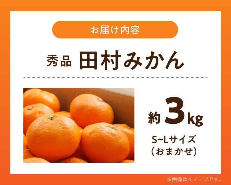 - ZD7030_【2026年先行予約】田村みかん 約 3kg S ~ L サイズおまかせ 秀品 甘味と酸味のバランス 濃厚 味 有田みかん 田村地区産 ブランド ミカン 高級みかん 贈答用 柑橘 フルーツ 果物 果実 デザート 国産 お取り寄せ 和歌山県 湯浅町 送料無料
