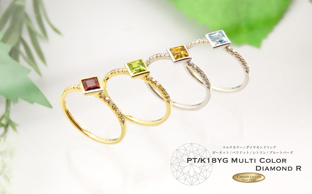 - スクエアカットマルチカラーダイヤモンドリング PT KT1196 指輪 ダイヤモンド ジュエリー リング ダイヤ 品質保証書付き 山梨 富士吉田