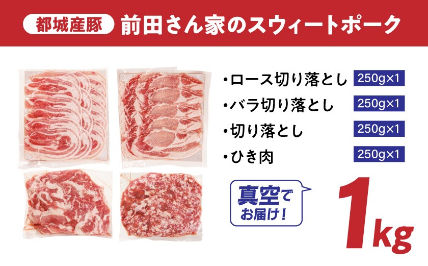「前田さん家のスウィートポーク」肉肉肉1kgセット(真空)_AA-89-002-1kg-s_(都城市) 豚肉 豚 ブランド豚 ロース バラ 切り落とし ひき肉 真空パック セット 1kg 肉 料理 アレンジ