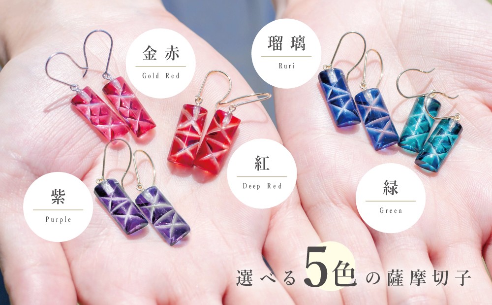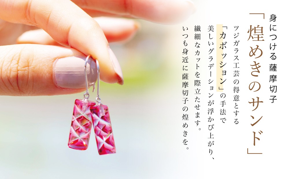 - 【薩摩切子】ピアス 長角 「煌めきのサンド」