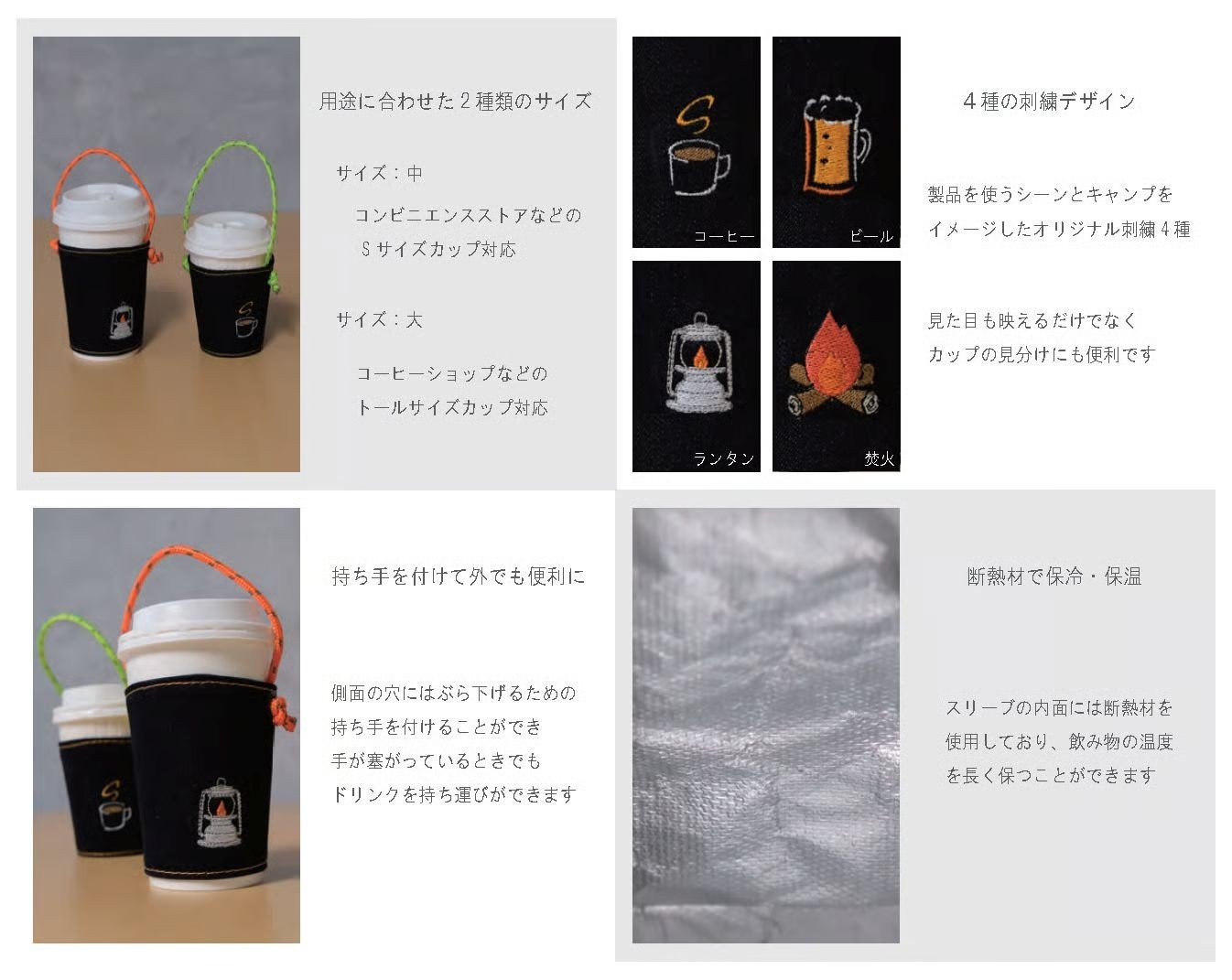 - 【選べるサイズ・刺繍デザイン】カップスリーブ / カップ ドリンク スリーブ 万能 便利 デニム生地 尾州 キャンプ キャンプ用品 アウトドア アウトドア用品 愛知県 知多市