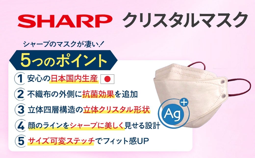 - シャープ製 クリスタルマスク 抗菌タイプ 不織布マスク ふつう サイズ 選べる6色 個包装 15枚入 日本製 国産 シャープ SHARP sharp シャープクリスタルマスク 立体 不織布 マスク おしゃれ 三重県 多気町 SH-P-04