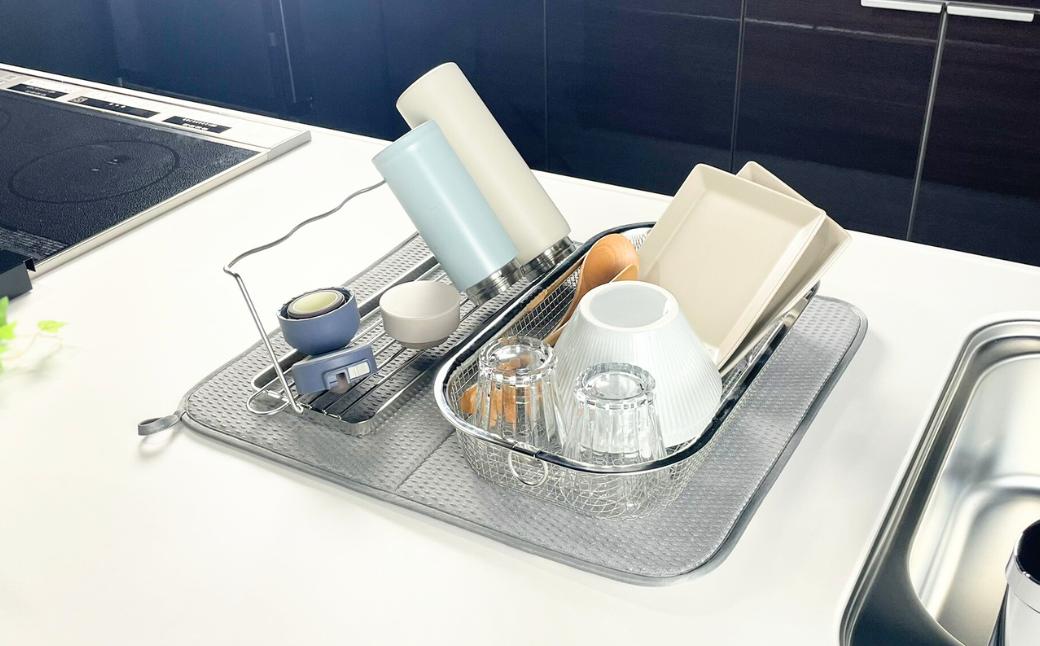 - すっきり暮らすセット(浅型+マット+ジャグボトル) 水切りかご 水切りマット ステンレス 食洗機対応 キッチン用品 bwsSELECTION [ビーワーススタイル] 燕三条製 省スペース 【020S105】