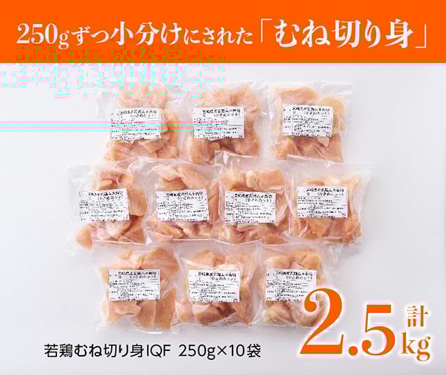 宮崎県産若鶏ムネ切身IQF 2.5kg (250g×10袋) 肉 鶏 鶏肉