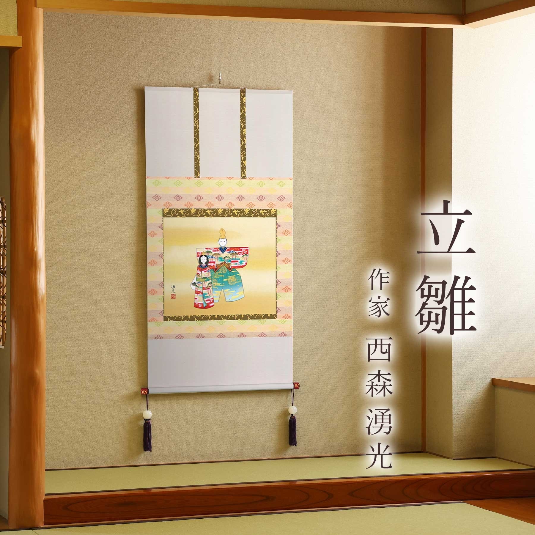 - 掛け軸「立雛」 西森湧光 尺八横 サイズ:65×138cm 桐箱付 掛け軸 和室 おしゃれ 日本画 表装 床の間