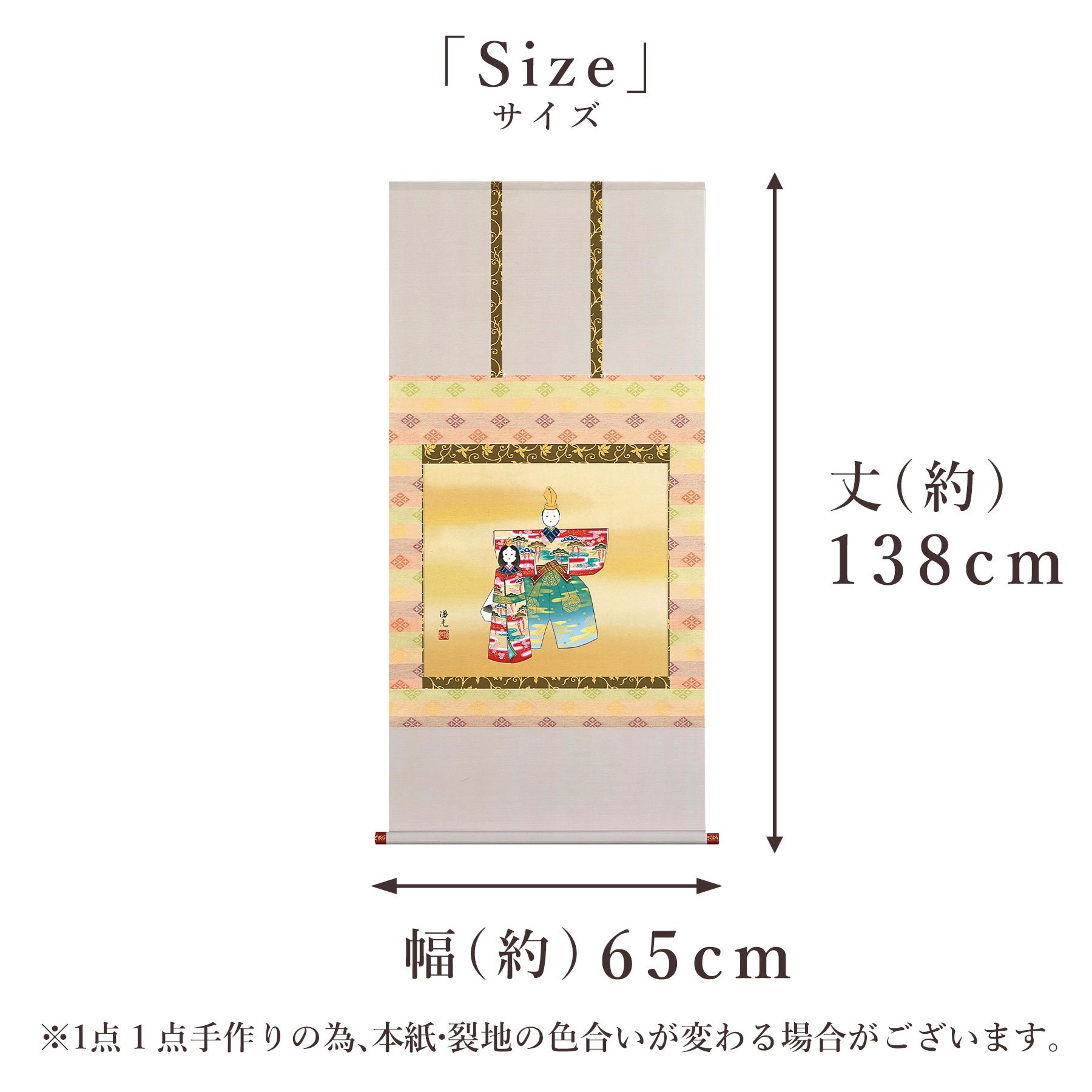 掛け軸「立雛」 西森湧光 尺八横 サイズ:65×138cm 桐箱付 掛け軸 和室 おしゃれ 日本画 表装 床の間
