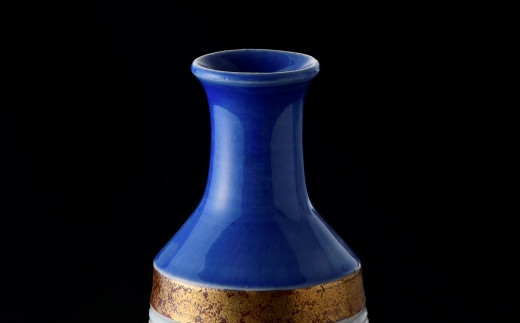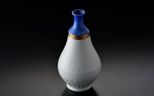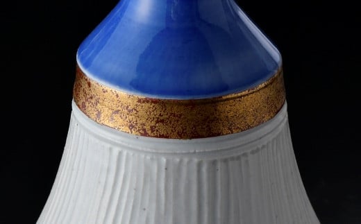 - 乃利陶窯【りはく】李白古染付地紋鎬彫朱金彩鶴花器