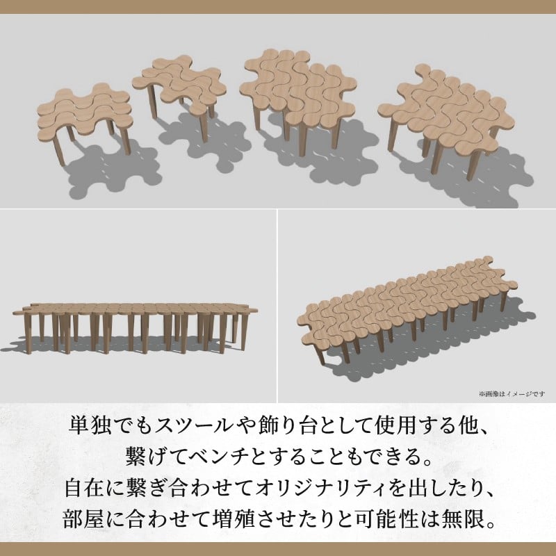 スツール 6脚 1セット 椅子 イス ベンチ 飾り台 家具 インテリア 天然木 木製 オリジナル デザイン ナチュラル 繋がる 自由自在 おしゃれ 自然 一人暮らし いす チェア 買い替え 伊勢 志摩 三重県 50万円 500000円 浜佐デザイン 建築家
