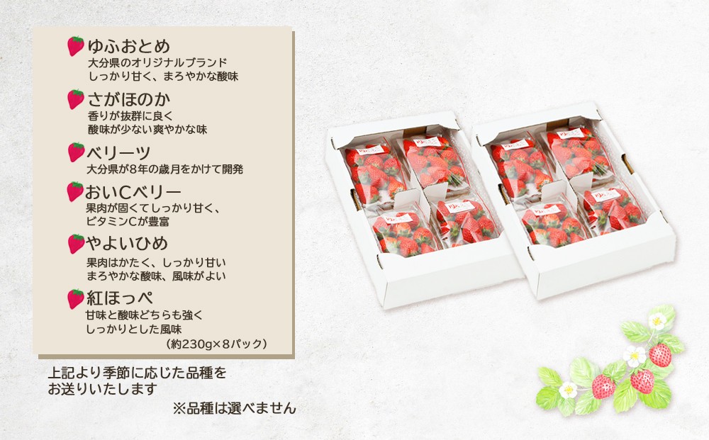 - 【2026年発送】湯布院の温泉で育てたいちご おまかせ約1,840g(約230g×8パック) | いちご 果物 フルーツ 旬フルーツ 苺 いちご イチゴ 人気 さがほのか ベリーツ 由布市 いちご ED03