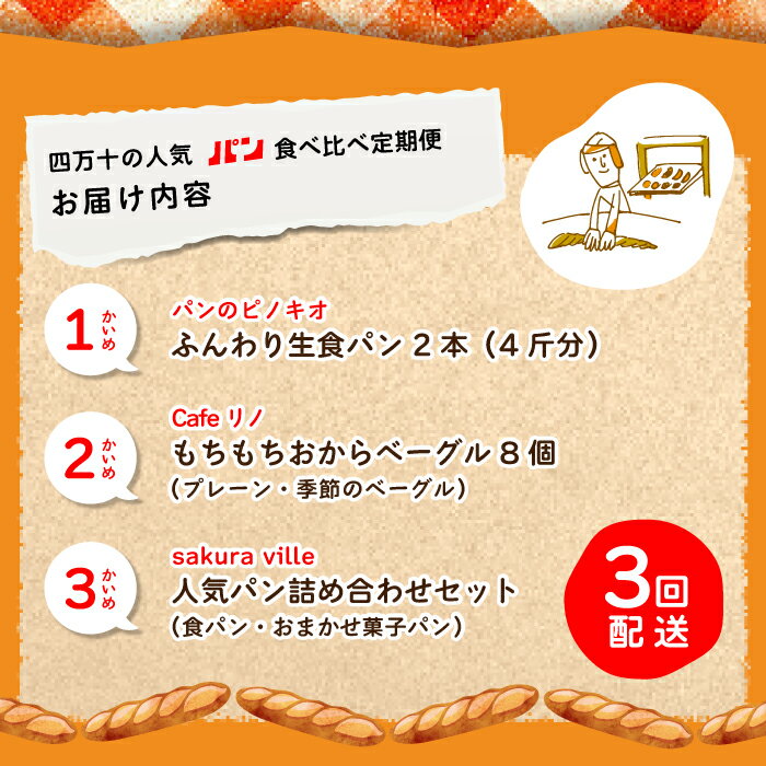 - 【ふるさと納税】26-376.【3回定期便】ふんわり・もっちり美味しい!四万十の人気パン食べ比べ定期便 [第2弾] 冷凍 食べ比べ 定期便 3回 パン 食パン 高級食パン ベーグル おから 菓子パン ご当地 ベーカリー 保存食 朝食 おやつ ふんわり もちもち お取り寄せ 送料無料