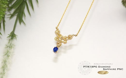 - ダイヤモンド サファイア ペンダント【プラチナ】 【K18イエローゴールド】