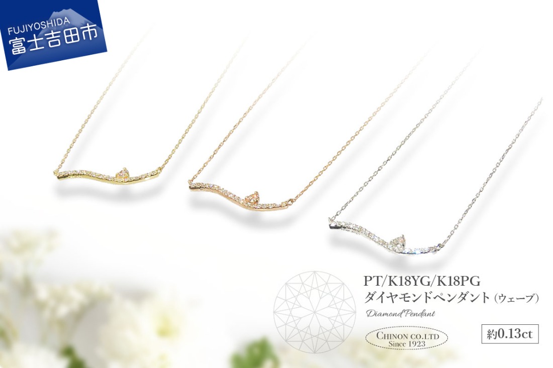- 【選べる地金 PT(プラチナ)/K18イエローゴールド/K18ピンクゴールド】ダイヤモンドペンダント(ウェーブ) PT MJ-1121/K18YG MJ-1122/K18PG MJ-1123 ペンダント ダイヤモンド ジュエリー ネックレス ダイヤ アクセサリー 品質保証書付き 山梨 富士吉田
