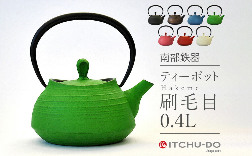 【ふるさと納税】南部鉄器 ティーポット刷毛目0.4L(グリーン) 雑貨 日用品 工芸品 装飾品