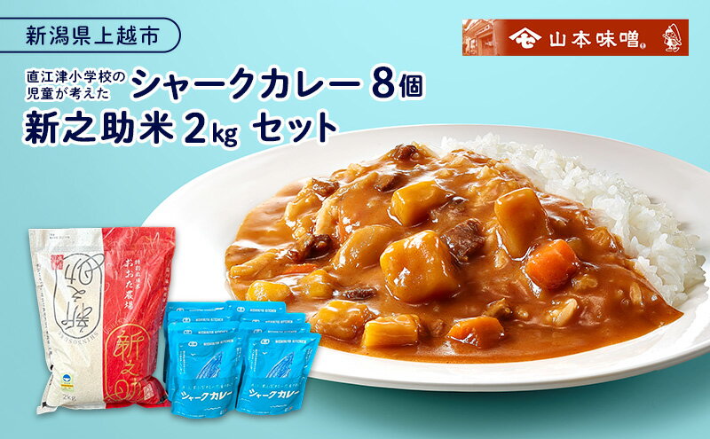 - 【ふるさと納税】直江津小学校の児童が考えたシャークカレー(8個)と新之助米(2kg)セット カレー ルー 米 上越市