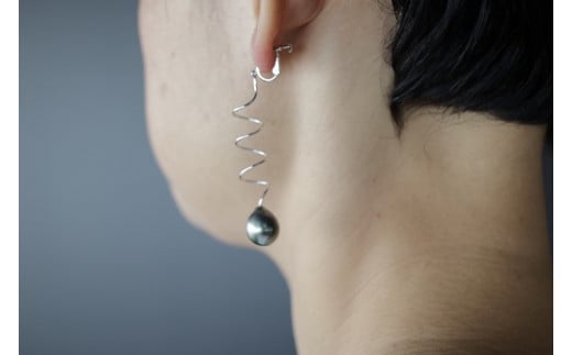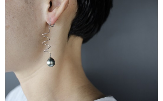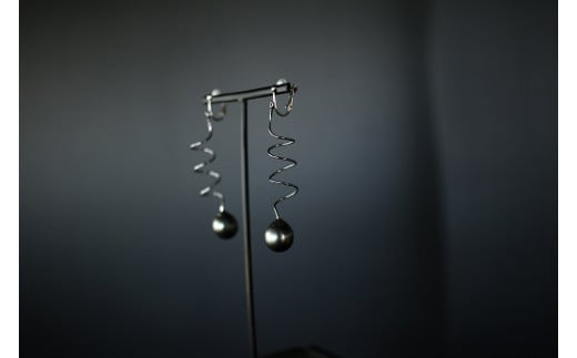 426 黒蝶真珠オーバル18金ホワイト コイルデザインイヤリング 真珠 K18 ジュエリー イヤリング パール 南洋真珠 黒蝶真珠 18金