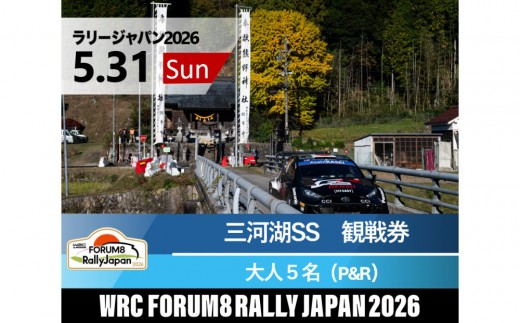 ラリージャパン【三河湖SS(三河湖観戦エリア)観戦券/大人5名(トヨタテクニカルセンター下山駐車場P&R)】5月31日(日)
