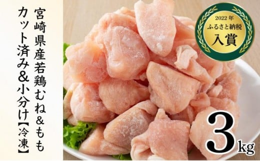 <2026年4月発送>小分け&パラパラ!宮崎県産鶏もも・むねカット合計3kg