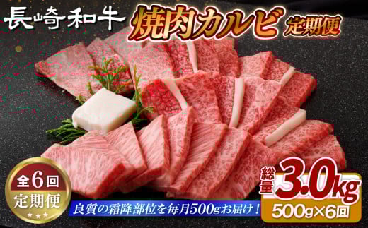 - B418 《定期便》長崎和牛焼肉カルビ(500g)【6回お届け】