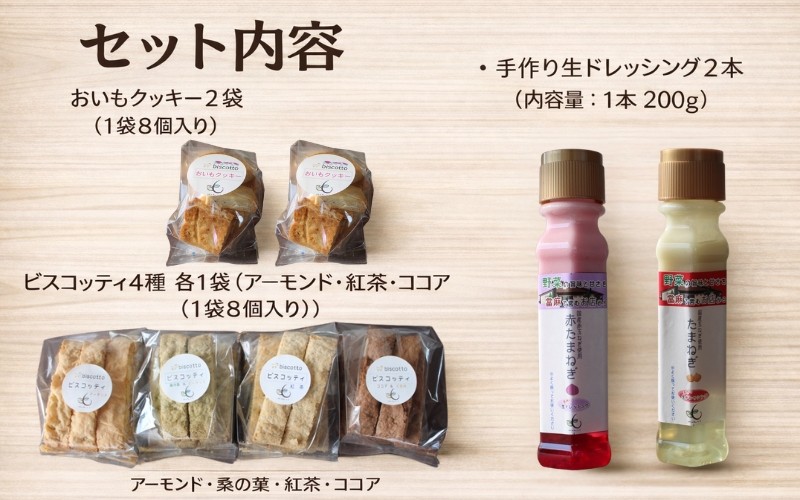 - 焼き菓子 6点 生ドレッシング 2本セット (玉ねぎ・赤玉ねぎ) / Coco-Make葛城 新鮮 手作り 詰め合わせ ドレッシング 国産 保存料なし 農福連携 奈良県 葛城市【coco004】