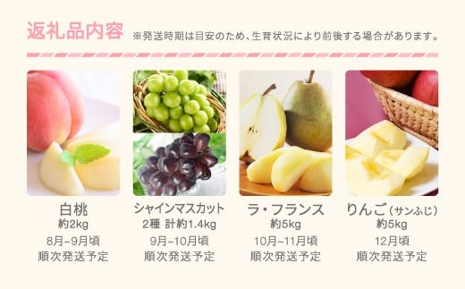 【ふるさと納税】福島のフルーツ4品定期便 約2kg 約3kg【2026年発送】 もも シャインマスカット 梨 リンゴ