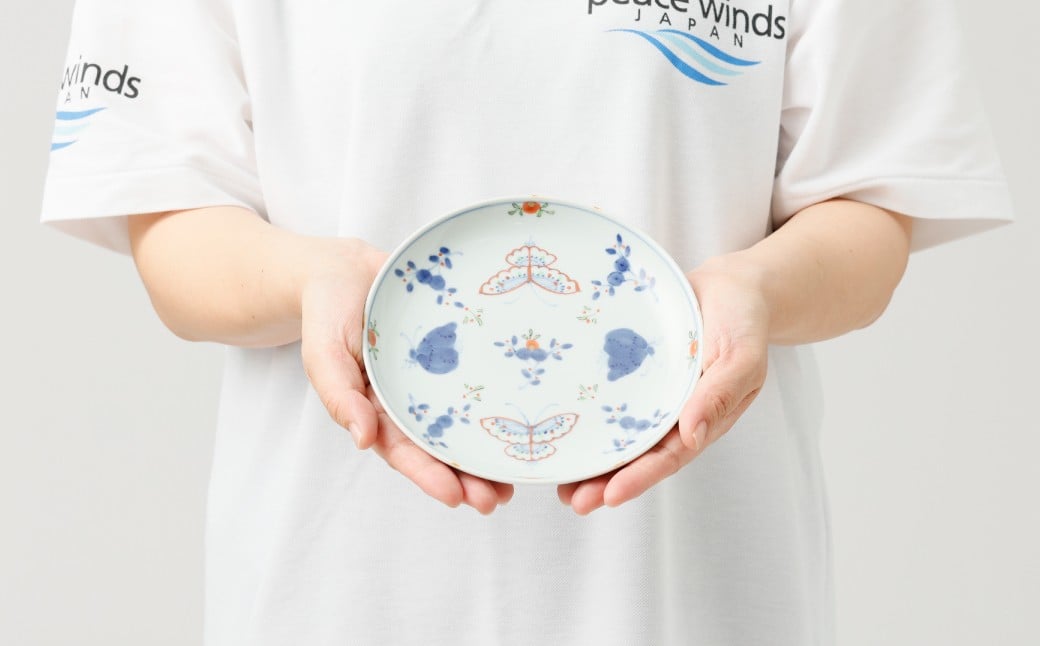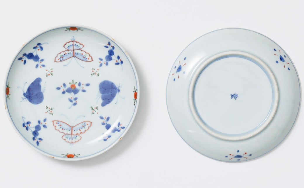 - 【福珠窯】有田焼/天啓花蝶 5.5寸(16cm)丸皿 2枚セット