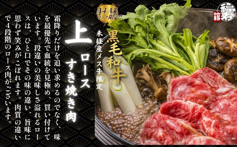 <選べる容量> 黒毛和牛めす牛 上ロース すき焼き肉 500g・800g 自家製わりした付き /すき焼き ふるさと納税 黒毛和牛 肉 牛肉 お中元 お歳暮 正月 ギフト 和牛 食べ物 奈良県 宇陀市 福寿館