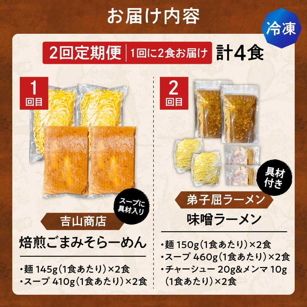 - 【冷凍/2回定期便】 D/札幌味噌 最強王 吉山商店・弟子屈ラーメン(各店2食×2回)| ラーメン みそ 北海道 札幌市