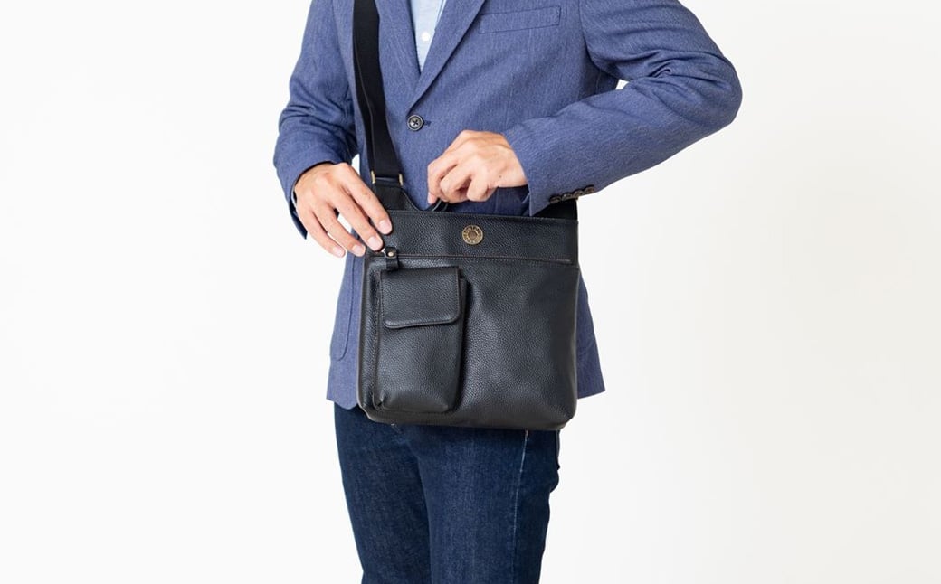 - 豊岡工房 牛革 スマホが取り出し易いショルダーバッグ(4332)黒・キャメル・オリーブ・ベージュ / ボディショルダーバッグ 斜めがけ 柔らかい シュリンク牛革 メンズ レディース かばん カバン バッグ 鞄 国産 日本製 小田清株式会社