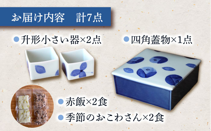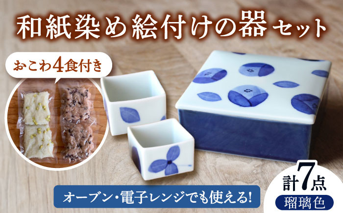 和紙 染め絵付け 器 と 季節 の おこわ さん 瑠璃色 【いつものごはんひとてま屋】 [TDS018]