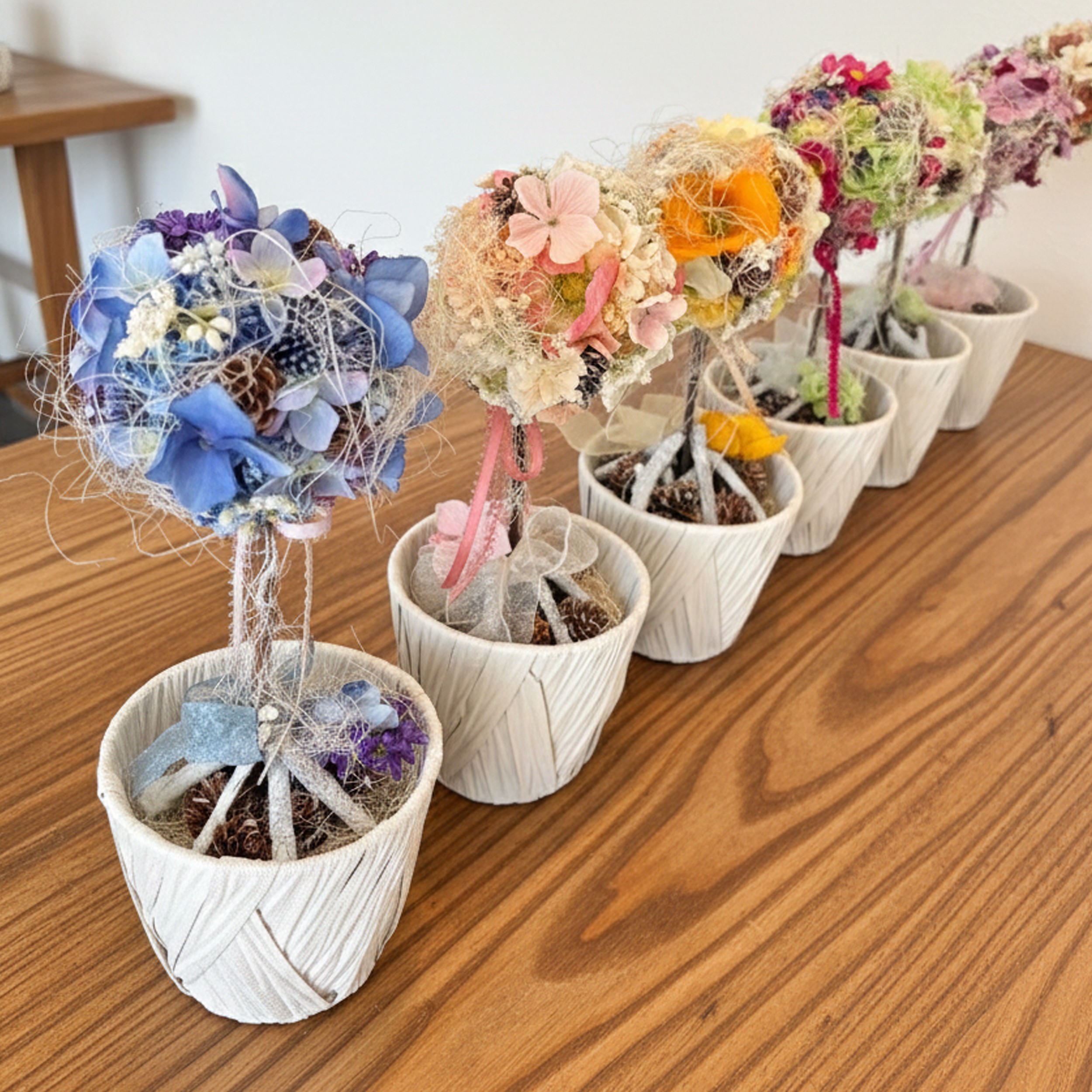 - 数量限定 限定品 トピアリー 花 インテリア フラワーアレンジメント ギフト 記念 お祝い 母の日 父の日 敬老の日 贈答用 プレゼント用 青 薄茶 紺 薄緑 ラベンダー サーモンピンク 黄色 オレンジ マゼンタ ワイン カラー 静岡 沼津