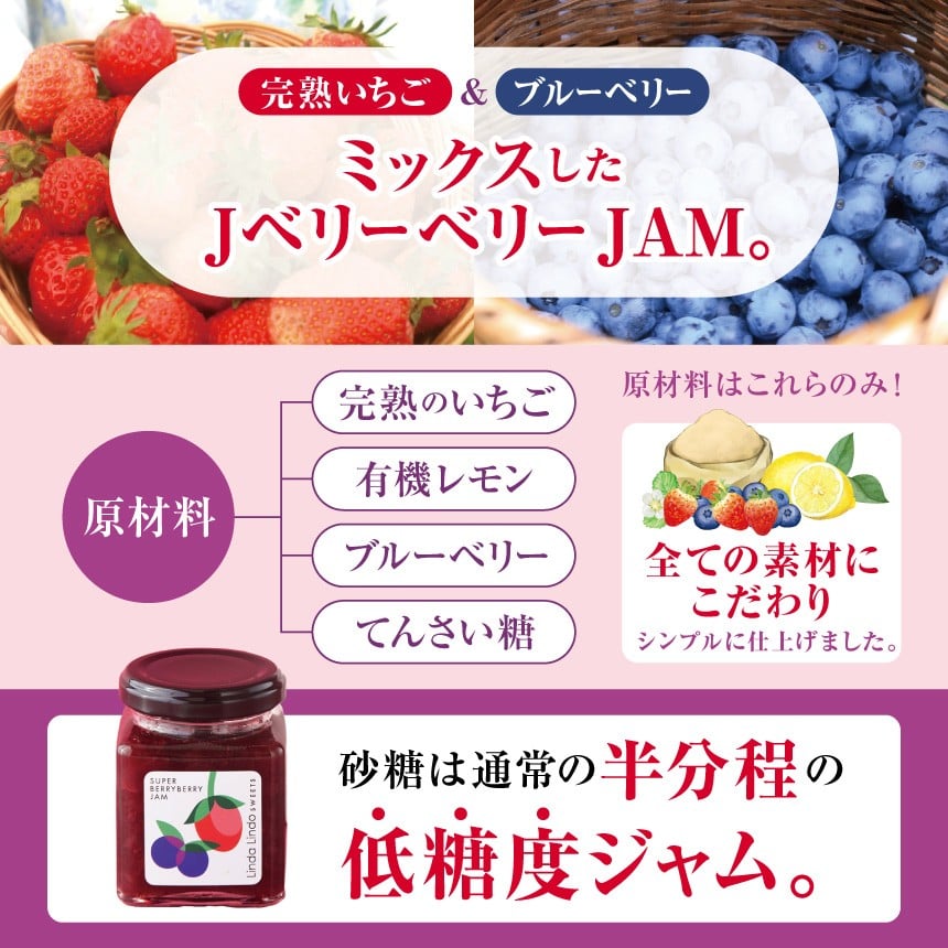 - ベリージャム Lindaの ORIGINAL BERRY BERRY JAM いちご & ブルーベリー 2個 ~ 6個 セット | ジャム イチゴ ブルーベリー ミックス ヘルシー 低糖度 パン ヨーグルト オリジナル 果実感 岐阜県 北方町