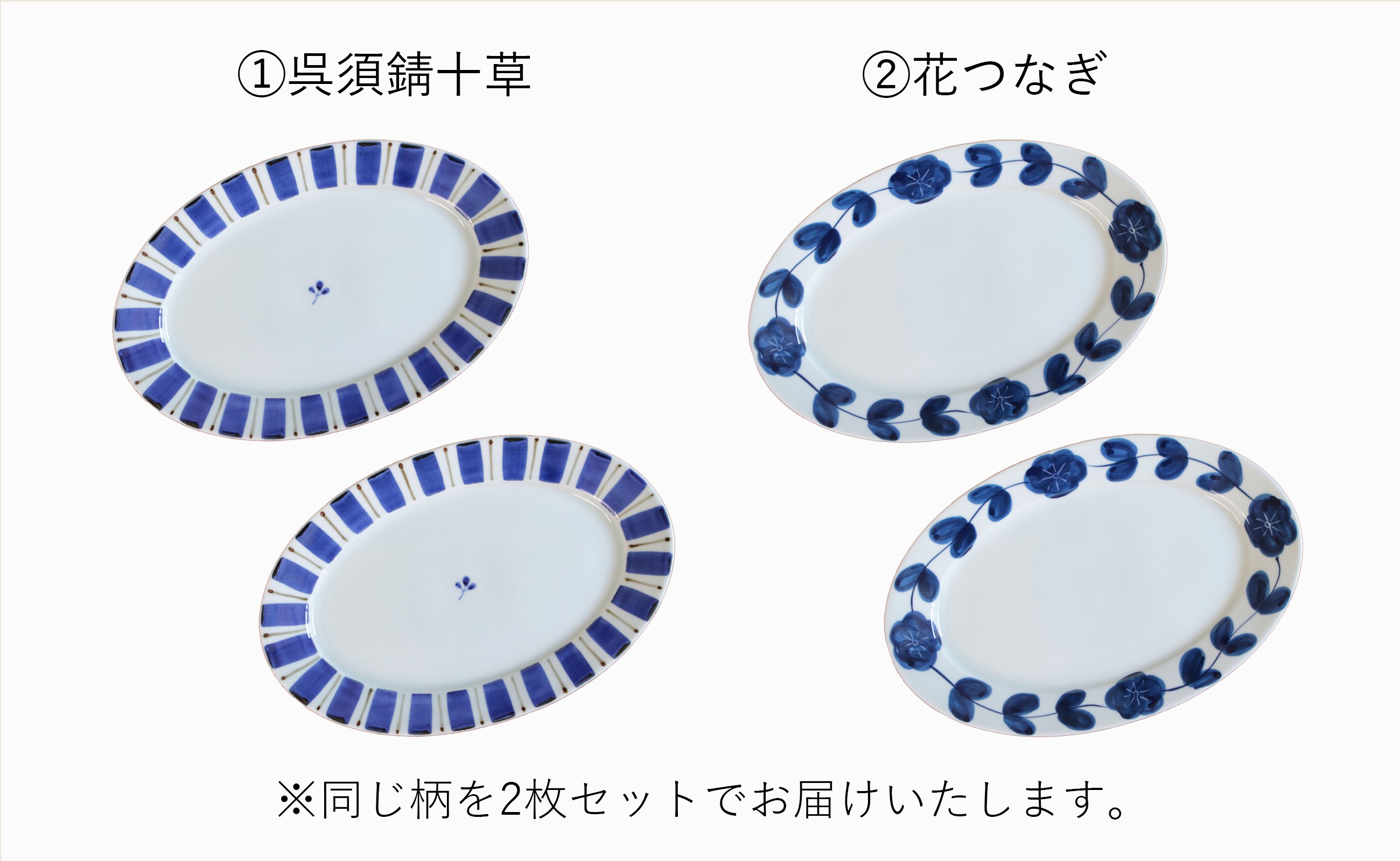 - 【カネアオ】有田焼 リム楕円皿(大)2枚セット(※柄をお選びください。)皓洋窯