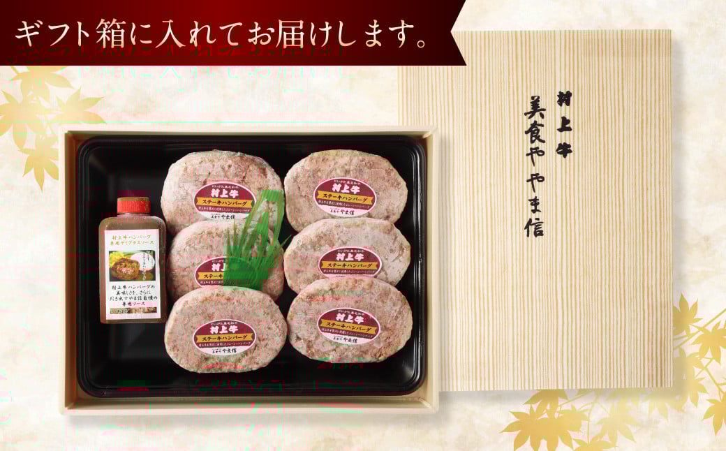 当店秘伝の練り込みタレなどで、じっくり練り込んだ村上牛ステーキハンバーグ 約600g(1ヶ約100g×6ヶ入+デミグラスソース付) B4007