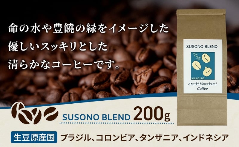 ブレンドコーヒー 「SUSONO BLEND」200g コーヒー 豆 珈琲 珈琲豆 ブレンド 自家焙煎 ブラジル コロンビア タンザニア インドネシア 炭火焙煎 静岡県 裾野市 [№5812-0908]