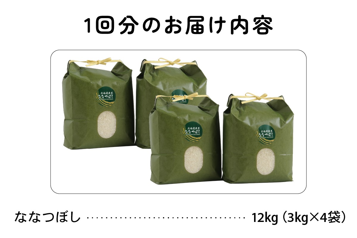 〈選べる回数〉北海道 留萌管内産 ななつぼし 12kg(3kg×4袋) 精米 冷めてもおいしい おにぎり お弁当 お米 米 ごはん 国産 甘い 北海道産 産地直送 R004-004-O